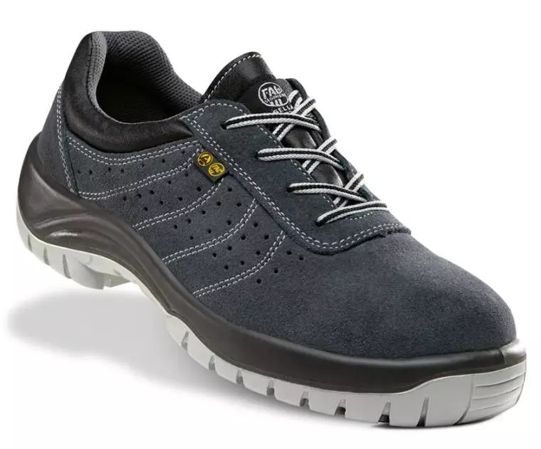 Zapato de seguridad S1P, piel serraje gris, plantilla textil y puntera COMPOSITE, METAL FREE, antideslizante EN-ISO-20345 S1P SRC, MARCA FAL