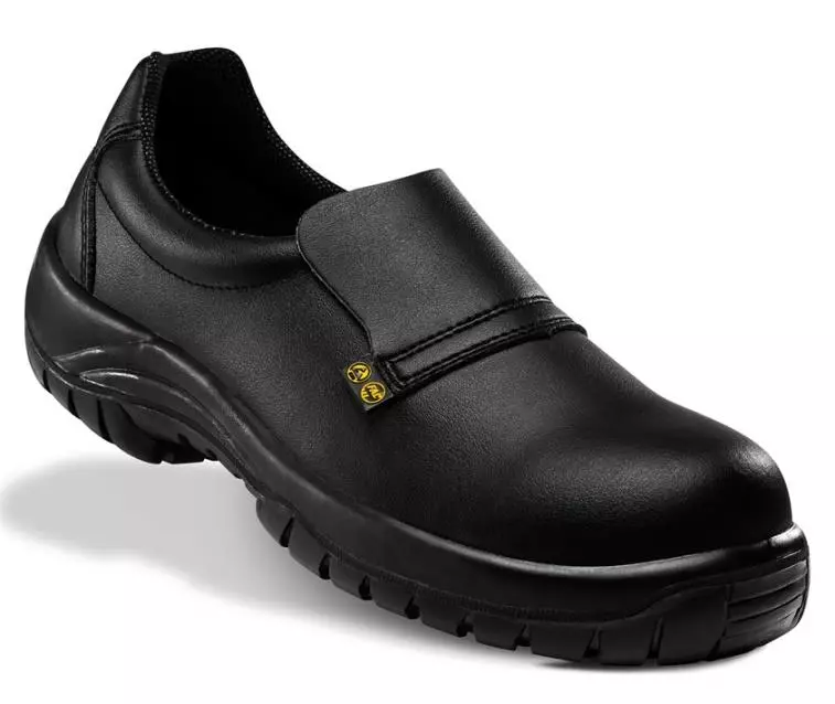 Zapato hosteleria blanco o negro, piel hidrofugada, puntera seguridad composite, cierre mediante elasticos, suela poliuretano antideslizante, METAL FREE, EN-ISO-20345 S2 SRC MARCA FAL